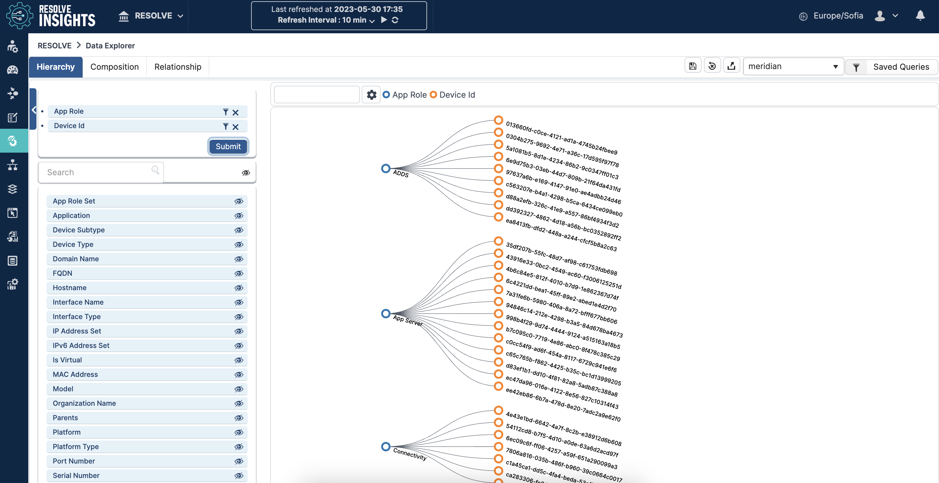 You can explore data for analysis by hierarchy, composition, and many-to-many relationships. It is available in the Data Explorer. You can also ingest additional data from your CMDB using a simple upload function.
