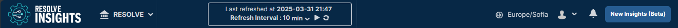 Switch to the new Resolve Insights interface by clicking the New Insights button in the top-right corner of the header. The button is available on each page and will redirect you to the new UI landing page, from where you can enter the new application pages.