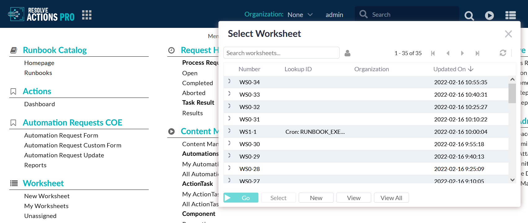 One method to execute Runbooks is to direct execution through the Actions Pro user interface. To execute a Runbook directly