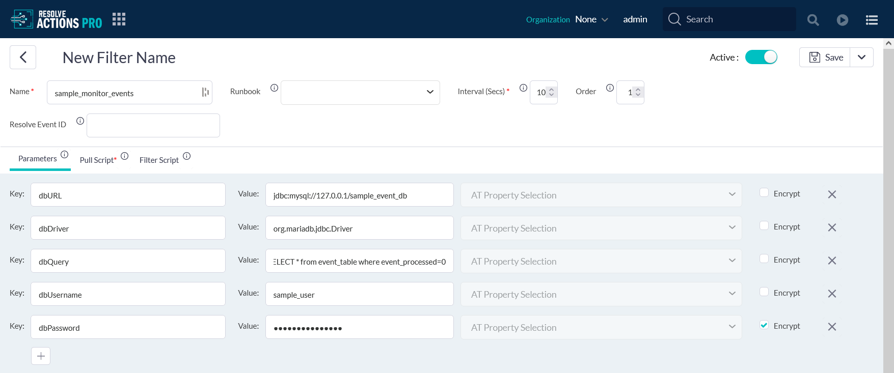 - Resolve Event ID—An arbitrary string value to sent to a possible Automation waiting for events when the filter is processed.