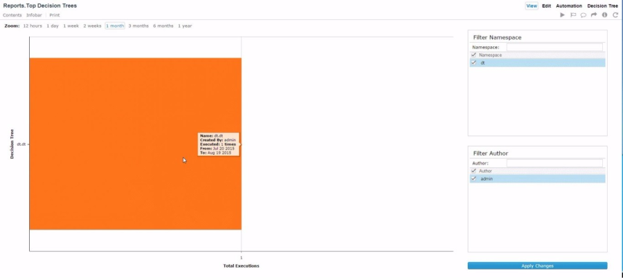 The reports show the most access knowledge and the most executed decision trees. This may help with planning optimization efforts.