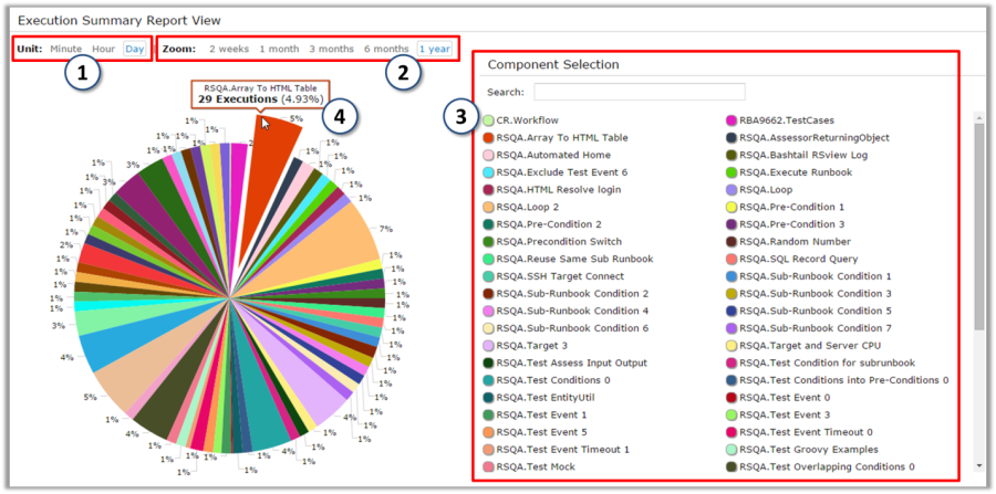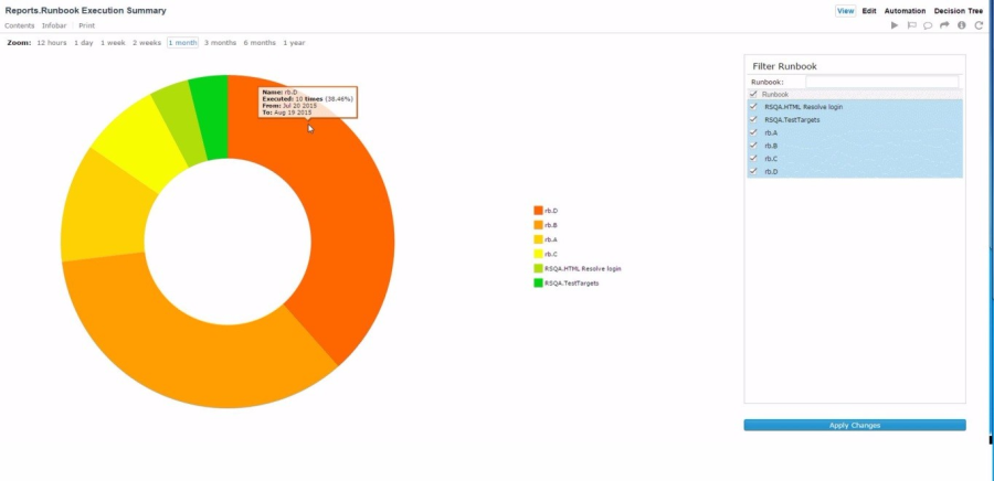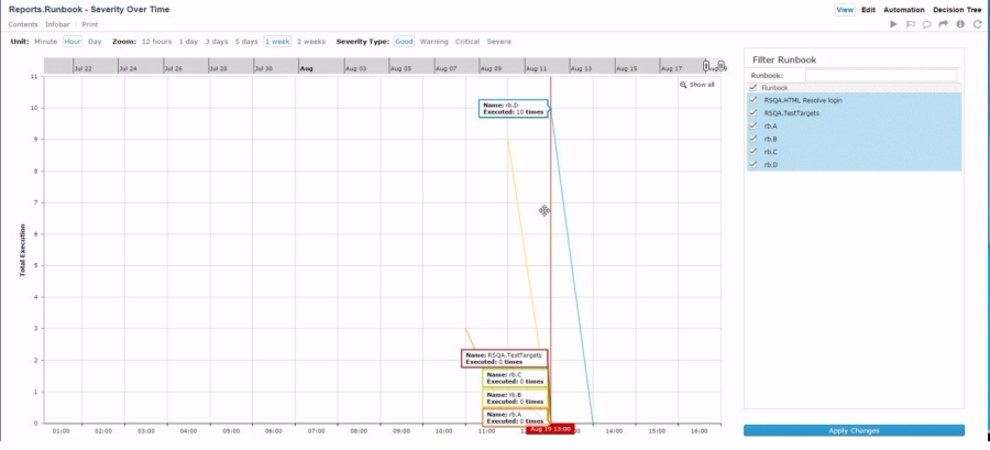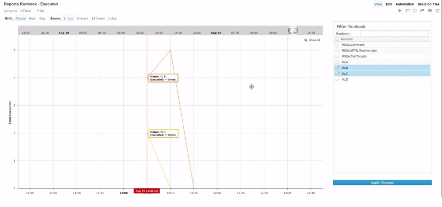 - Usage Reports—Provide detailed Runbook usage information such as how the Runbook was run and how many times the critical path was taken.