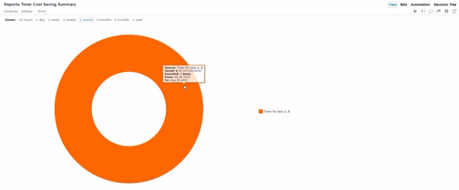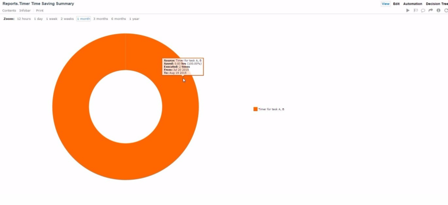 This feature provides insights to improving the process. The charts show the count and details of path executed, completed, and aborted. The duration information can assist with optimization planning as well.