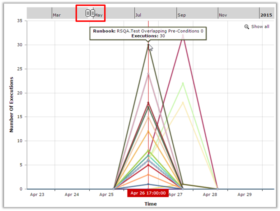 The vertical axis lists the total executions, while the horizontal axis shows the time frame.